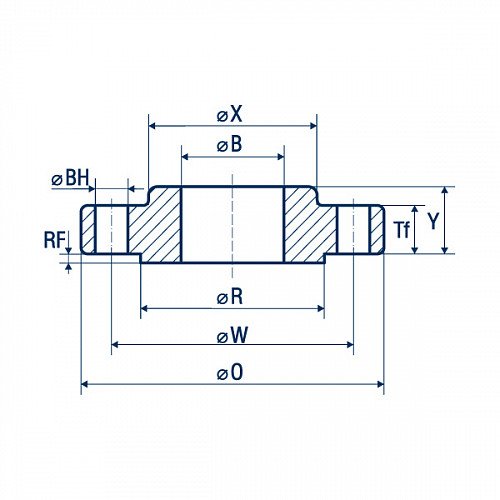 Регламентируется плоский фланец с соединительным выступом стандартом ASME B 16.5.