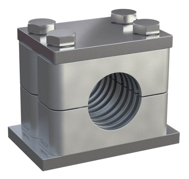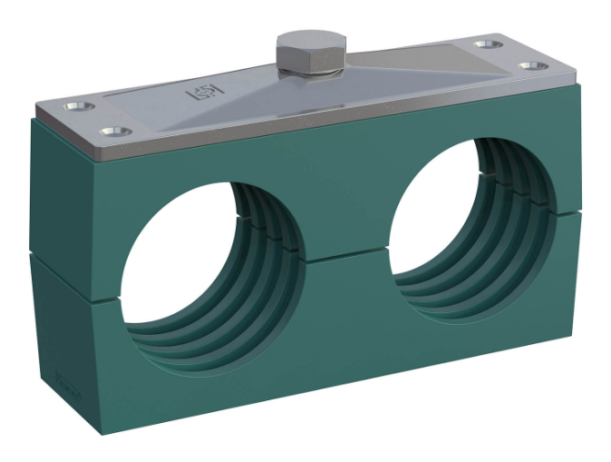 Это блочные зажимы с утолщенными стенками и усиленными болтами для фиксации компонентов систем среднего и высокого давления. Тяжелые зажимы Штауфф с резиновыми вставками используются в сложных условиях, где важно снизить вибрацию и замедлить износ системы в условиях высоких нагрузок.